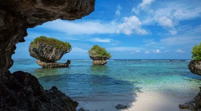 ⭐ 버섯 모양의 돌이 4개의 바위가 유명해지면서 관광객이 일부러 찾는 조용한 해변
