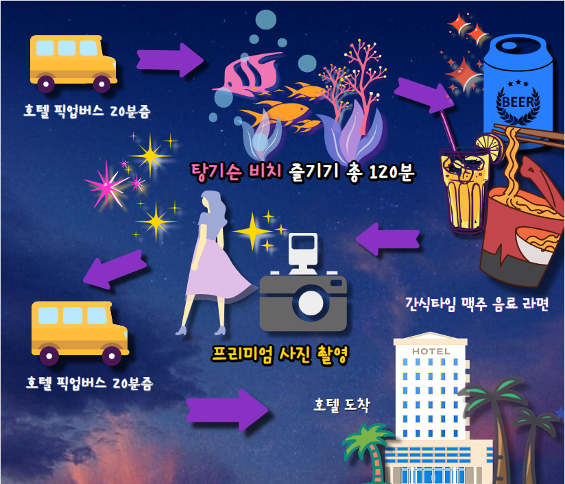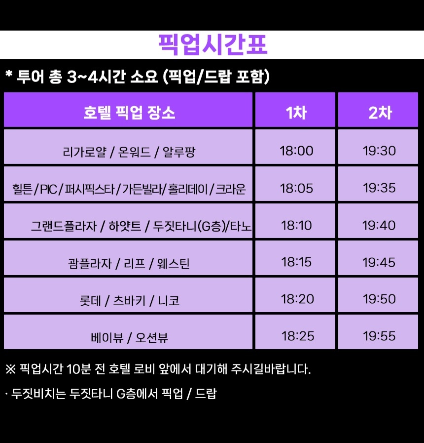 🕑 행사 소요 시간 : 약 3시간 30분 소요 ( 호텔 픽업, 드롭 포함 )