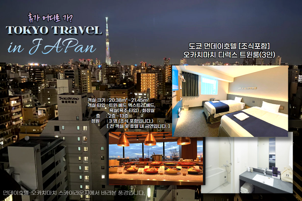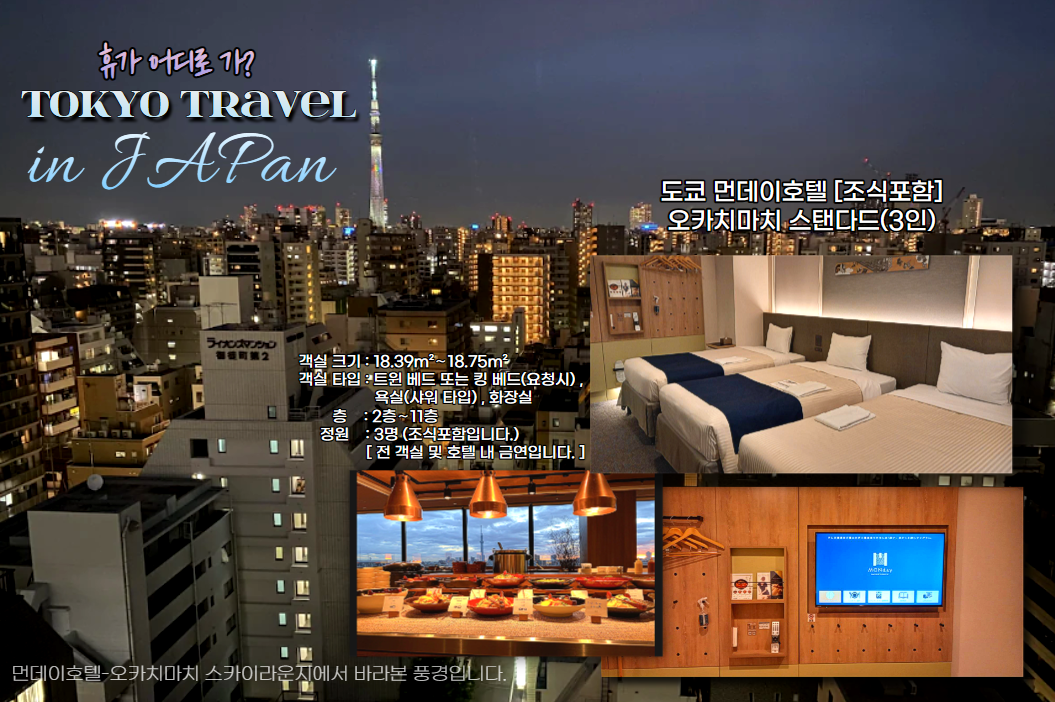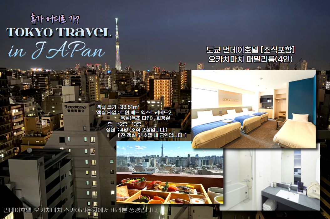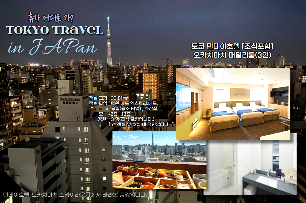 (성인 3인 조식포함으로 편리한 교통편과 깨끗한 신축 호텔입니다.)