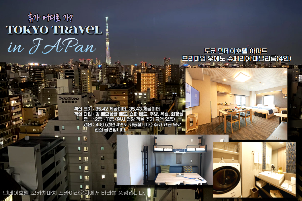 [가족 숙박형] 아파트 프리미엄 우에노 슈페리어 패밀리룸(4인)