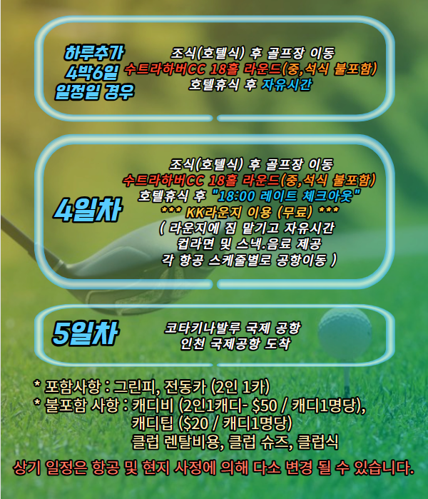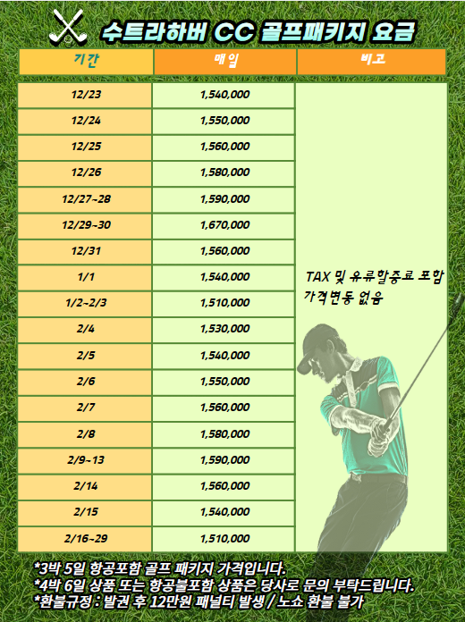 💲 수트라하버 골프 & 리조트 일정 및 요금소개