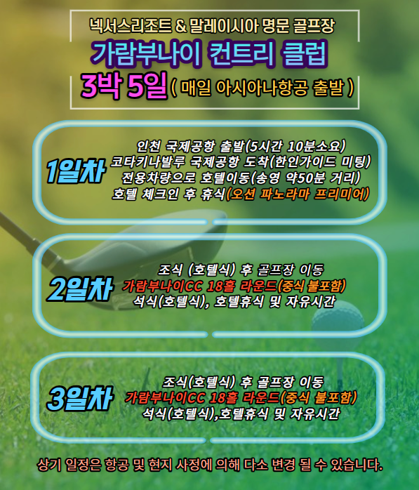 💲 수트라하버 골프 & 리조트 일정 및 요금소개