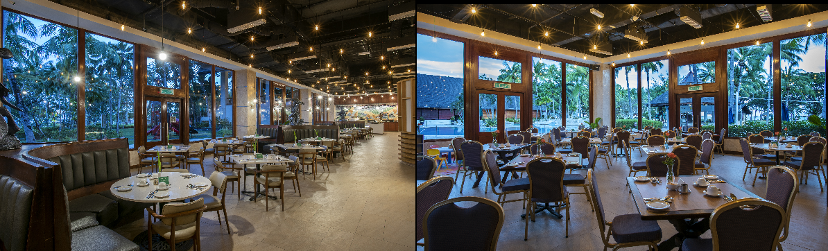 리조트 내에는 다채로운 현지식을 맛보실 수 있는 '더 킹피셔'와 올데이 다이닝을 즐기실 수 있는 '더 페뉴', 지중해 음식 전문 레스토랑 '올리브', 중식 레스토랑 '노블 하우스', 한식 레스토랑 '서울 페어웨이 그릴' 이 있습니다.