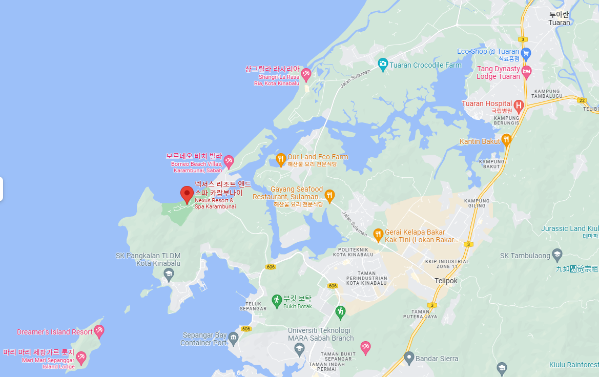 넥서스 리조트 & 스파 가람부나이는 코타키나발루 국제 공항에서 차로 약 50분 거리에 있습니다.