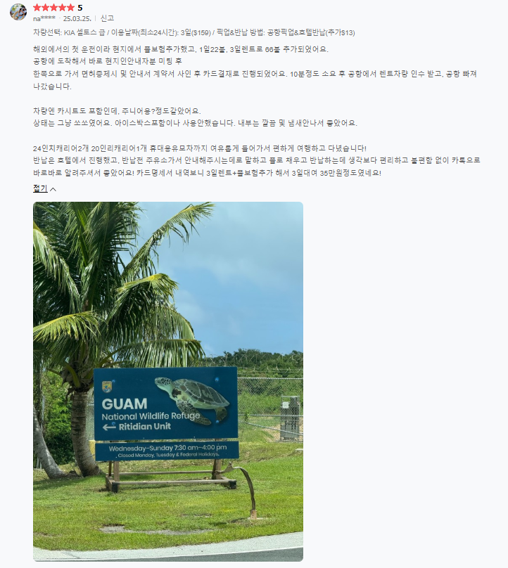 4.흡연이나 실내 오염에 대한 부분은 완전면책 보험과 별개입니다. ( 괌의 모래는 청소가 힘듭니다. 과도한 모래로 인한 실내 오염은 주의하셔야 합니다. )