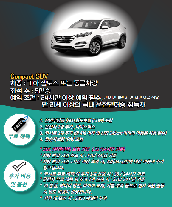 - 차종 : 셀토스 SUV 또는 동급차량