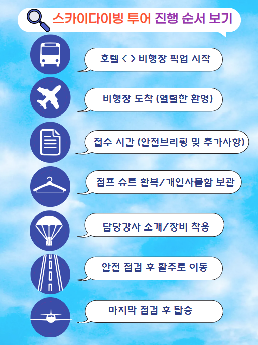 (개별 이동을 원하시는 분께서는 예약 비행 시간 40분 전까지 비행장으로 도착 부탁 드립니다.)