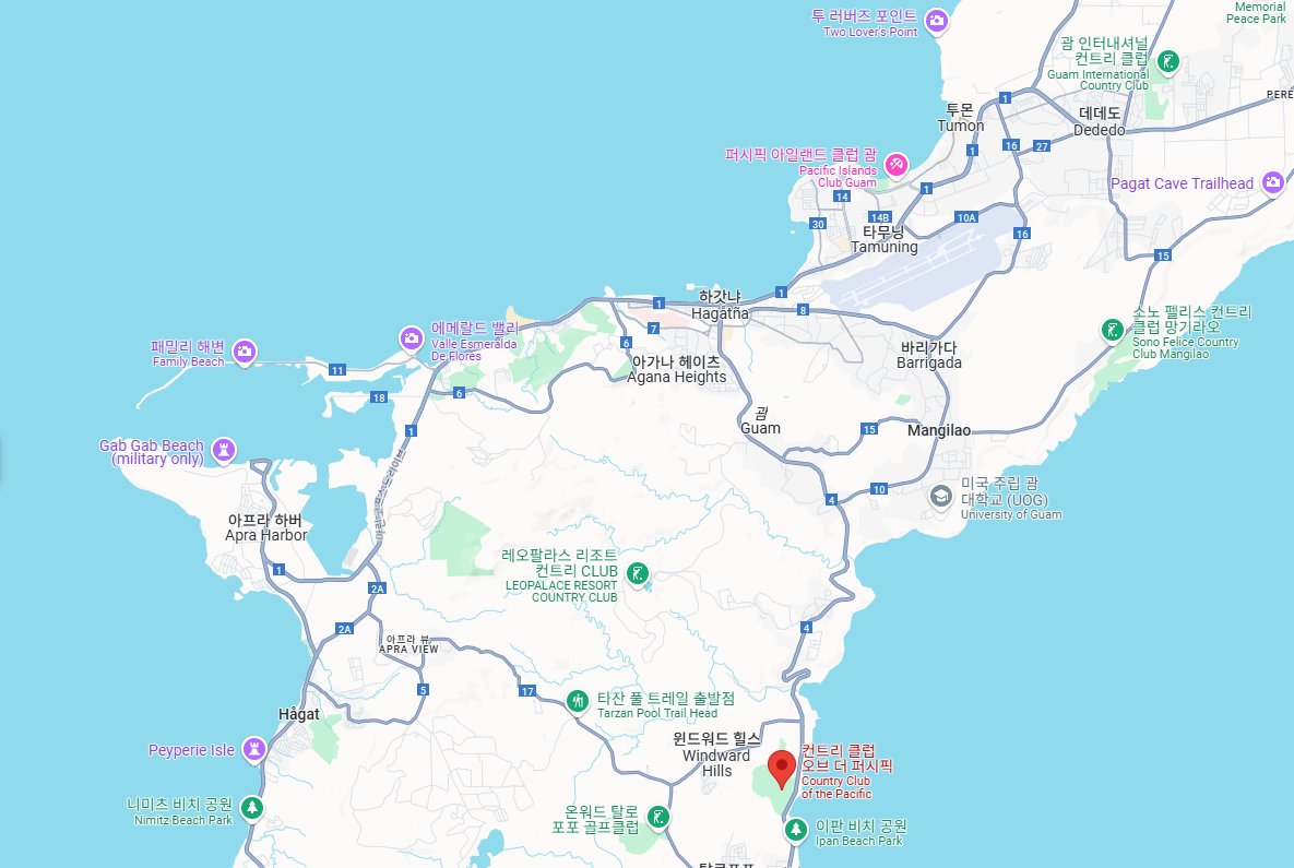 * 1973년에 개장하여 괌에서 가장 오랜 역사를 가진 이 골프장은 페어웨이 내 카트 진입이 가능해 체력 소모를 줄여주며, 대부분의 홀이 바다를 향해 설계되어 아름다운 경관을 선사합니다.