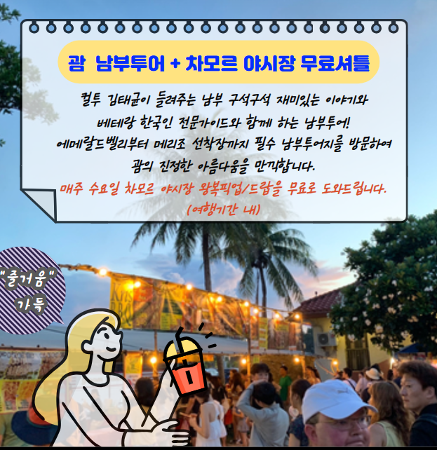 차모르 야시장 예약 만석 또는 현지사정으로 인해 행사가 불가능할 시 공항샌딩으로 대체되며 원하시지 않을 경우 환불은 안됩니다.