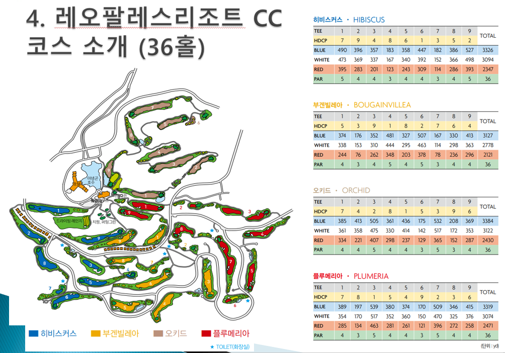야외 수영장, 피트니스 센터, 편의점(레오 마트), 프론트 데스크, 이탈리아노 레스토랑, 컨시어지, 세탁실(유료), 제빙기(1,5층),야구장, 축구장, 36홀 골프 클럽 하우스,비지니스 센터