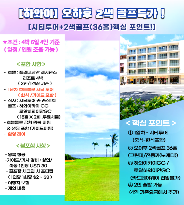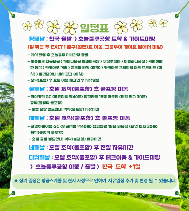 하와이 골프 안내사항 (최소 출발인원 2인 이상)