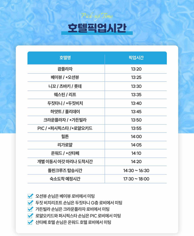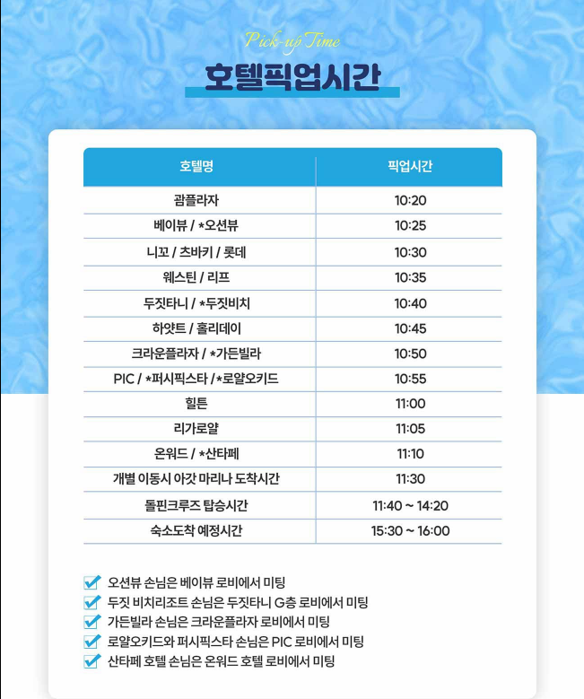 💥 당분간은 A오전타임, B점심타임(점심포함),C점심타임은 미픽업 상품으로 운행하며 앞으로 오후타임도 선보일 예정입니다.