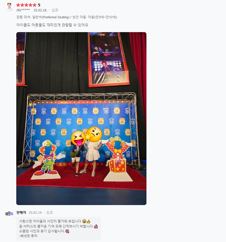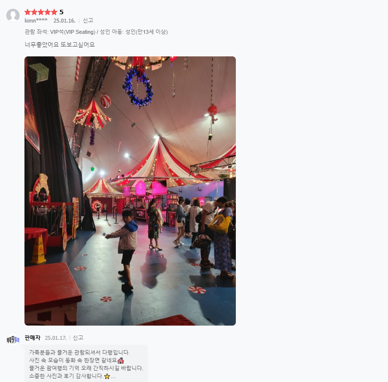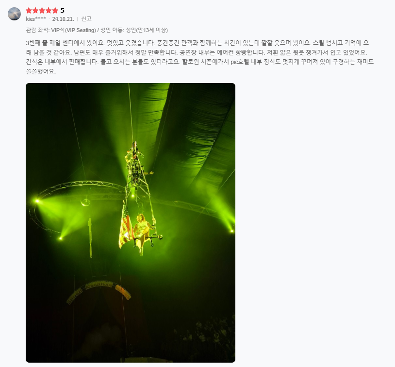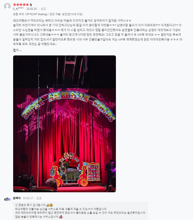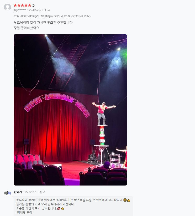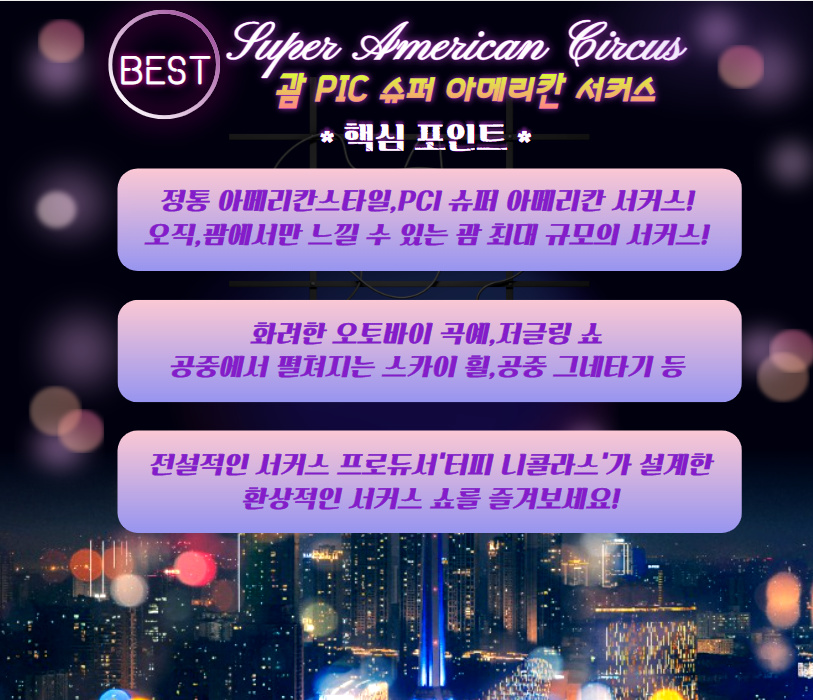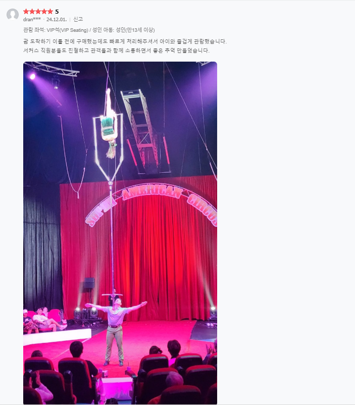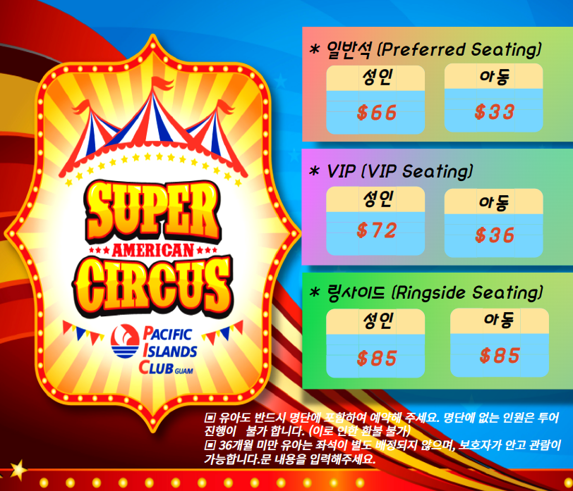 ▣ 슈퍼 아메리칸 서커스 상품은 저녁식사가 제공되지 않습니다.