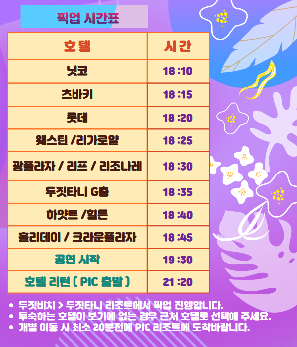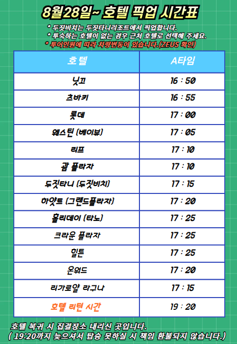 운영 시간 : 오후 7시 30분까지 체크인 필수